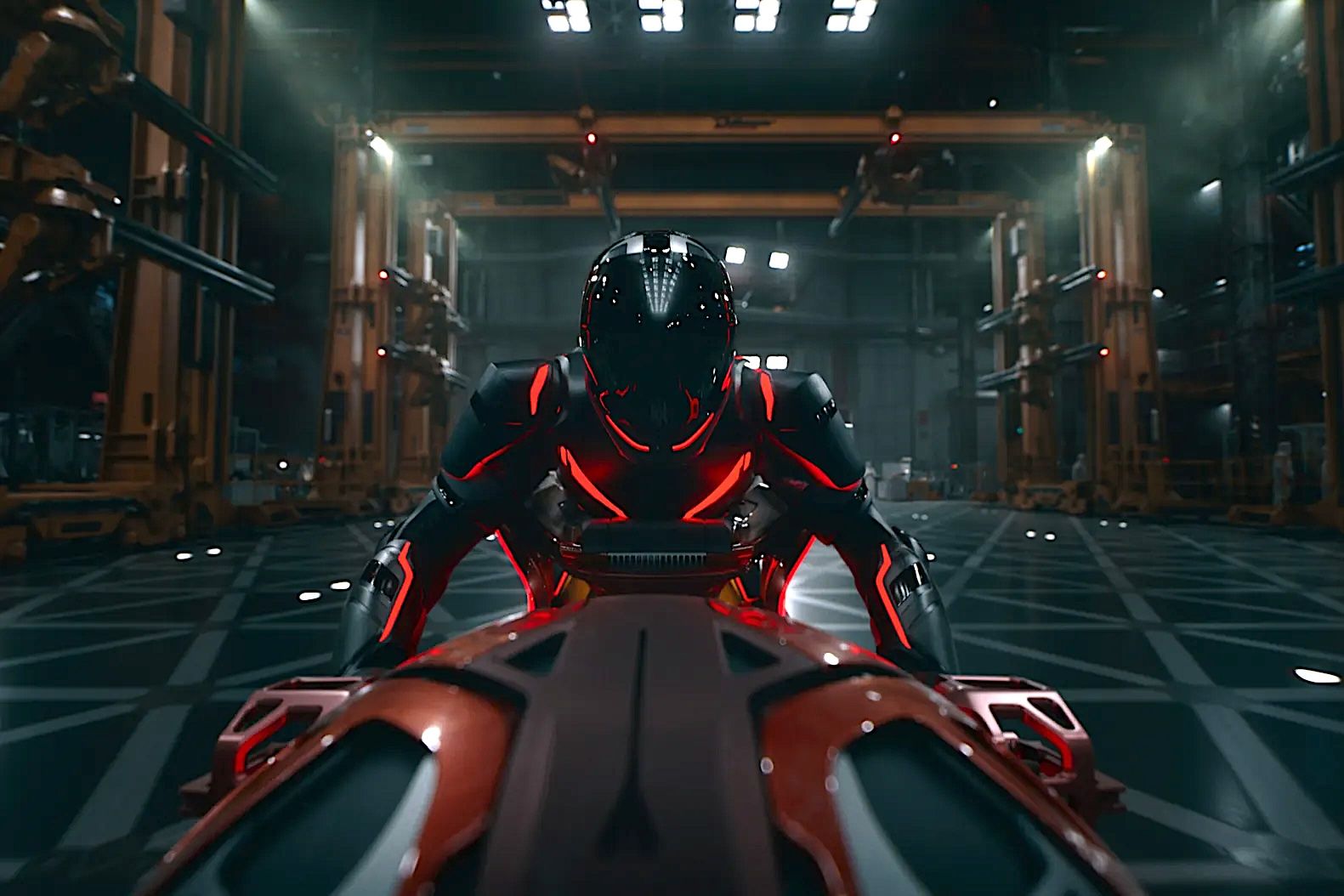 In Tron: Ares il contrasto tra passato e futuro trova la sua espressione più chiara nel modo in cui i due poli del film manipolano la tecnologia. Eve Kim lavora su antichi floppy di carta, scavando nei server di Flynn come un’archeologa digitale, alla ricerca del codice “permanence” sepolto tra i resti dell’informatica primordiale. È un gesto quasi romantico: le sue mani toccano la memoria, la riscoprono nella polvere, la riportano in vita. Dall’altra parte, Julian Dillinger genera Ares attraverso un processo di stampa tridimensionale. Un laboratorio chirurgico di luce e metallo in cui l’idea diventa materia. È la nascita del corpo sintetico, la carne della macchina.