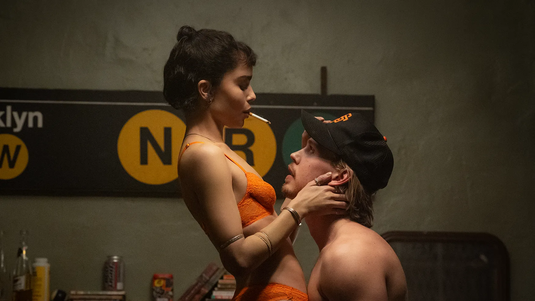 Al centro di Una scomoda circostanza troviamo Austin Butler, che interpreta Hank Thompson, un uomo intrappolato in eventi più grandi di lui. Butler riesce a unire vulnerabilità e determinazione, restituendo un personaggio che si muove costantemente tra il desiderio di fuggire e la necessità di resistere. Accanto a lui, Zoë Kravitz porta sullo schermo un ruolo più intimo, di sostegno e contrappunto emotivo, rappresentando la voce della normalità in un mondo sempre più instabile.